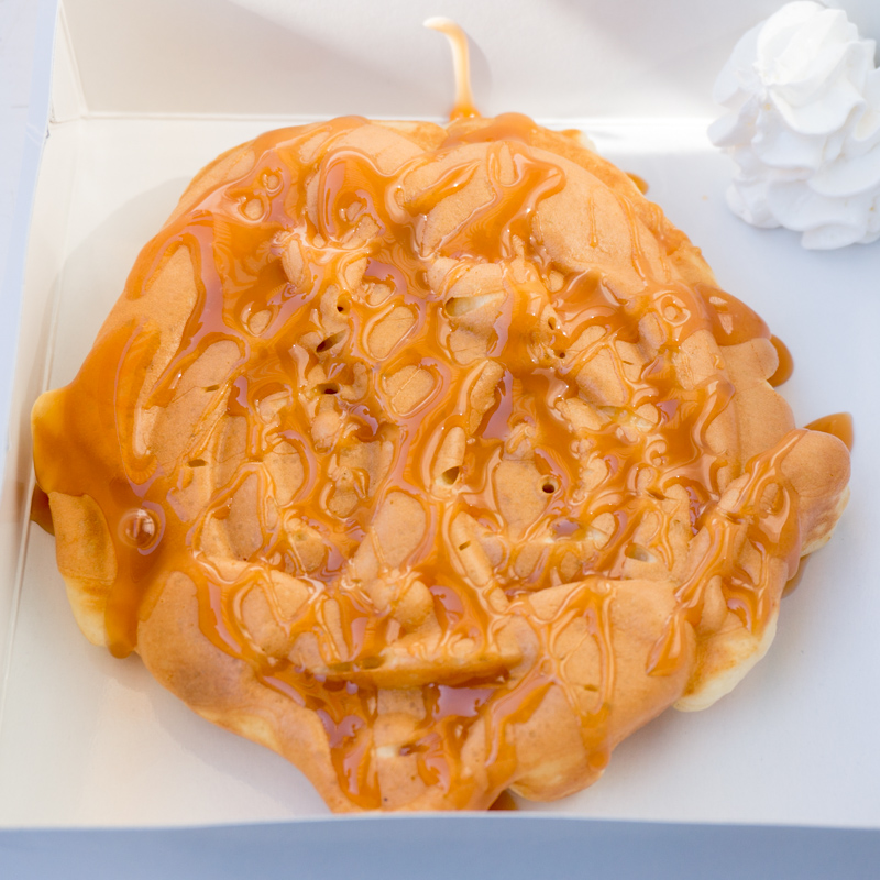ひらパーのキャラクターであるピピンくんの顔型のワッフルが売っています。