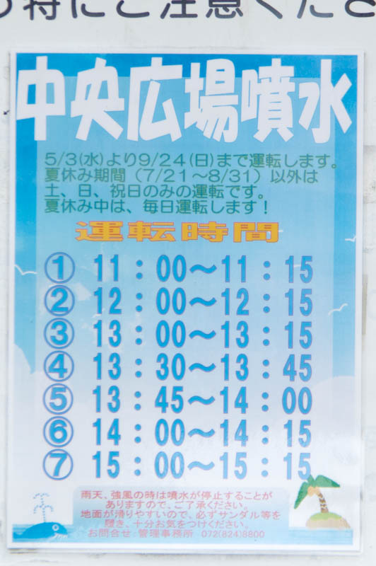 噴水のエリア。僕が行った時は水が出ていなかったんですが、噴水の様子が寝屋川新聞にアップされていましたので、参考にどうぞ。