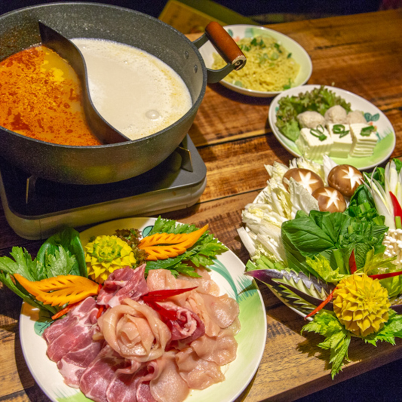 アジアンな雰囲気の中で食べられるソーン鍋。