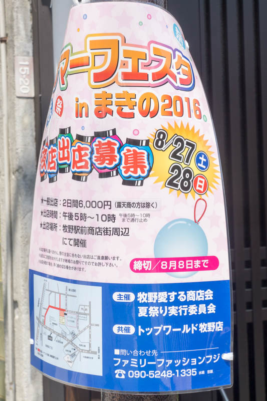 | 8/27-28(土日) | サマーフェスタ in まきの2016 | 牧野駅前商店街周辺 →地図 →張り紙 |