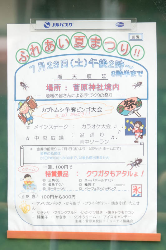 | 7/23(土) 14:00〜20:30 | ふれあい夏まつり!! | 長尾菅原神社 →地図 →張り紙 カラオケ大会・盆踊り・南中ソーラン・カブトムシ争奪ビンゴ大会有 |