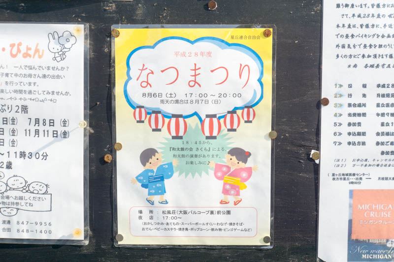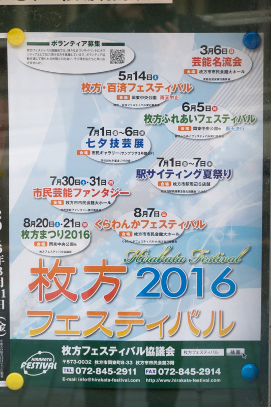 | 8/20-21(土日) | 枚方まつり2016 | 岡東中央公園 →地図 →張り紙 →去年のレポ |