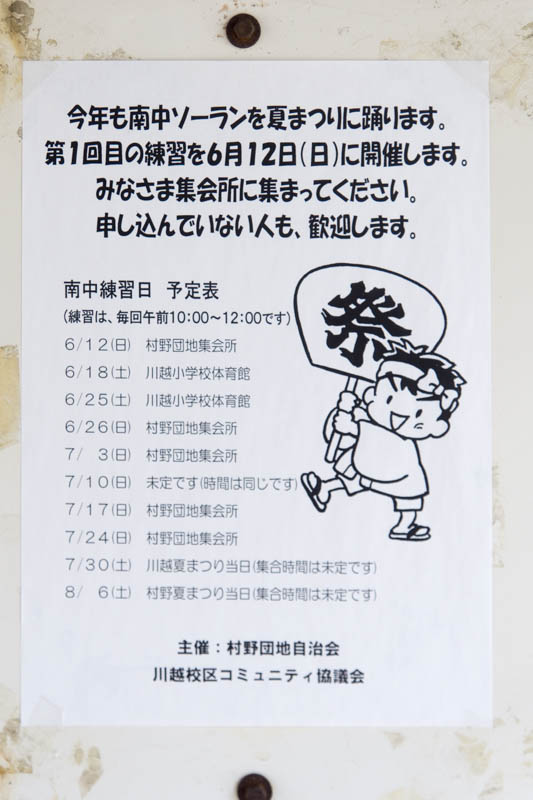 | 8/6(土) | 村野夏まつり | 多分村野三角公園 →地図 →張り紙 |