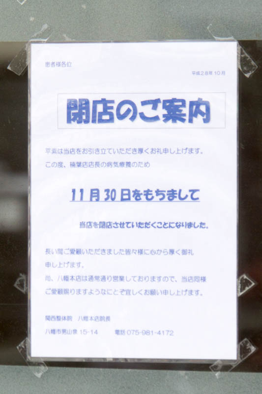 12/15:かどや食品(10/31)関西整体院 樟葉店(11/30)追加