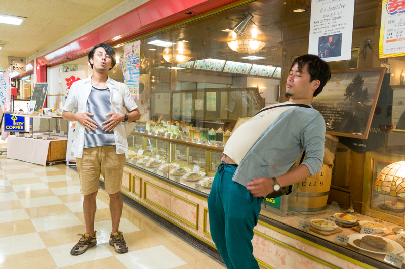 サンプラザの「ロン」ででっかいパフェ食べたあとの満腹の図。