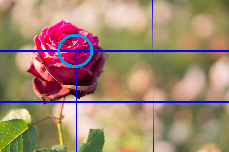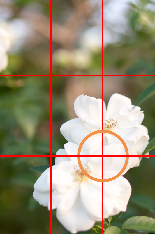 縦・横に等間隔で線2本を入れると思いながら、だいたいそれぞれの線が交差するところに撮りたいものを持ってくる構図です。単純なものもこのように撮るとそれっぽくなるので不思議!