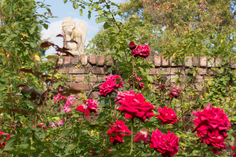 赤いバラを撮りたかったらついついそれだけを撮ってしまいますが、左上にゴブリンのようなほおづえをついたおもしろい置物があるので、これも一緒に撮って見よう!ポイントはその意識だけです!