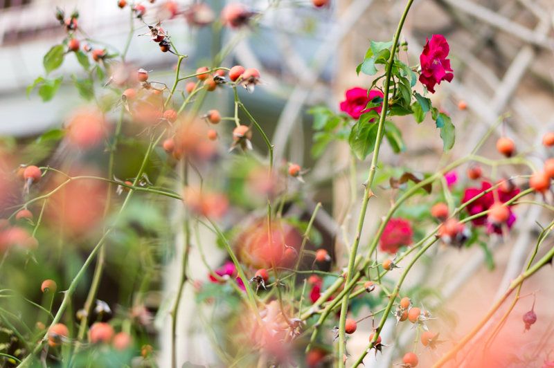 すると手前にあるものがぼやっとボケて奥行きが出て、何かいつもと違う印象の写真になります。