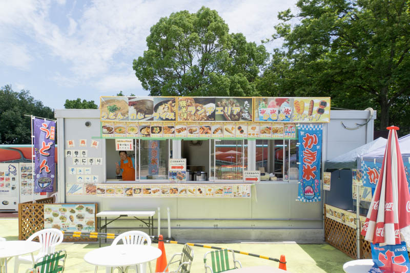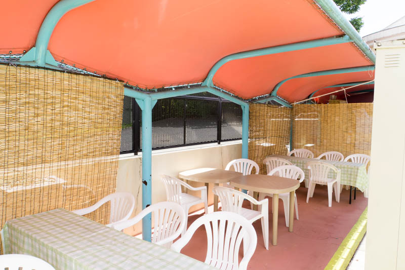 食べるところはこんな雰囲気。パラソル付きのテーブルもあります。