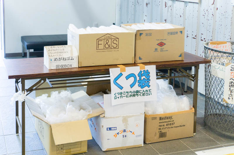 更衣室前にはくつ袋がありますので、これに靴を入れて持ち運びます。
