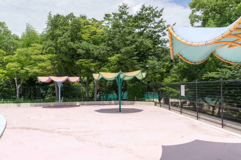 小島エリアにある滝行ができそうな噴水は、子供たちに大人気なんだそう。