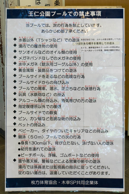 禁止事項について。飛び込みなど色々と禁止されていますので要注意。
