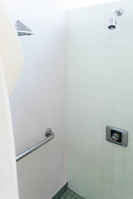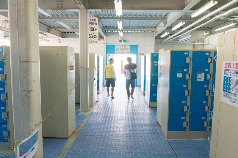 こちらは男子更衣室内。左側はメンテナンス中となっていますが、混む時期になると開放されるそうです。