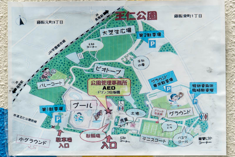 行き方としては車や自転車を利用する場合以外にも、王仁公園はJR藤阪駅から約550mの位置にあるので、徒歩8分程度で行くこともできます。