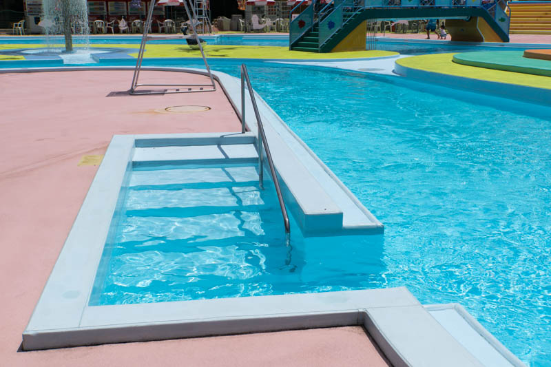 ちなみにこのプールも水深が場所によって違い、この写真でいうと手前側が水深150cmで、奥側が120cmになっています。
