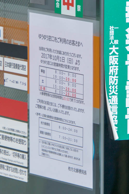 ■ 枚方北郵便局の営業時間が短くなったみたい↓