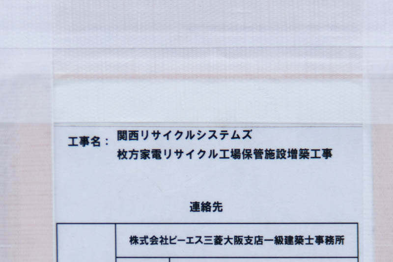 隣接している関西リサイクルシステムズの枚方家電リサイクル工場保管施設を増築する工事だそう。