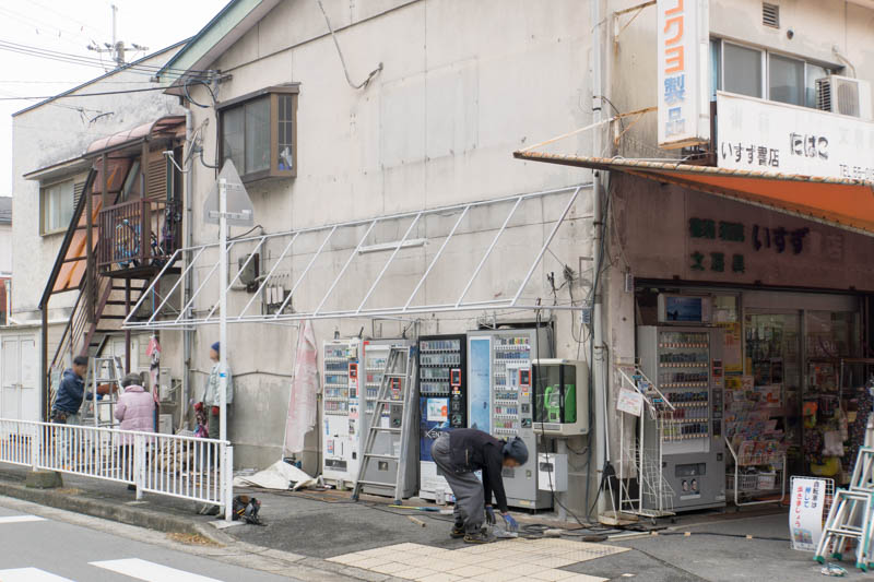 ■ 招提南町のいすず書店の横にテントつける工事してる↓
