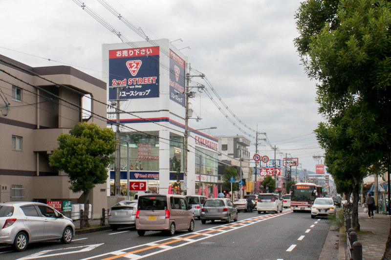 反対方向に行くとすぐ近くには先日オープンした唐揚げ専門店「鶏笑」があり、ダイソーやジョーシンなどの前を通って、くずはアベニューとの交差点「楠葉中央」にでます。