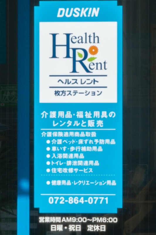 招提平野町のサーバがあったところにできたのは介護用品レンタル店「ダスキンヘルスレント」。宮之下町からの移転