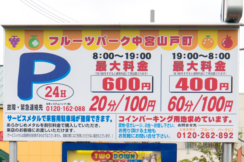中宮まぶね保育園前に「フルーツパーク」ってコインパーキングができてる