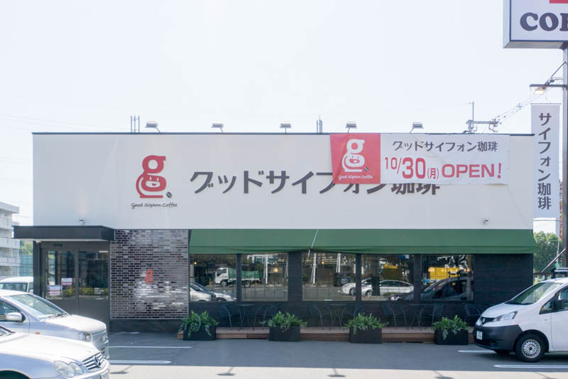 国道1号線沿い家具団地そばに作っていた「グッドサイフォン珈琲」がオープンしています。