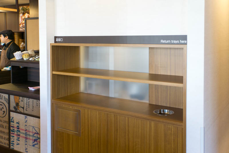 砂糖やミルクなどはこちらのカウンターで追加し、席で食事。