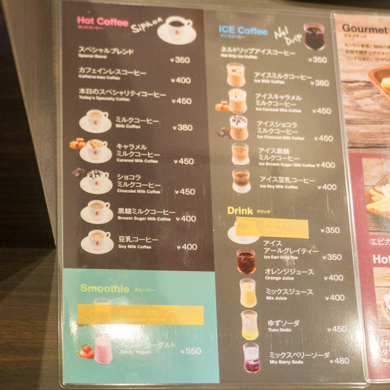 ドリンクはこんな感じ。やはりイチオシは店名のとおりサイフォン式のコーヒー。