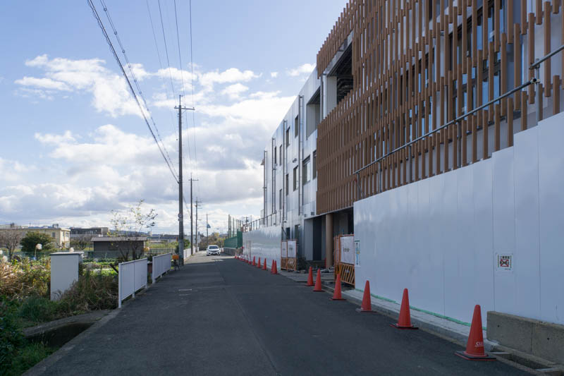 こっちにいくとすぐ隣には磯島小学校、さらにその隣には枚方なぎさ高校があります。その先には旧1号線。