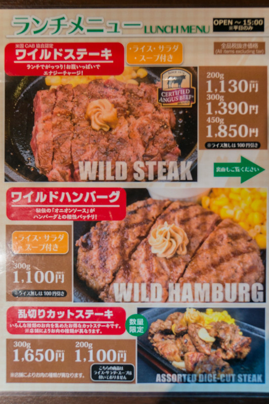 ワイルドステーキ 200g 1,130円(税別)を注文。