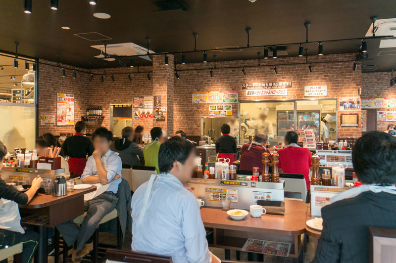 いきなりステーキといえば、立ち食いスタイルでステーキを楽しめるのが特徴の店舗ですが、こちらのお店は店内席が設置されています。