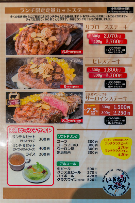 いきなりステーキといえば、最近テレビなどでも取り上げられている話題のステーキ店。