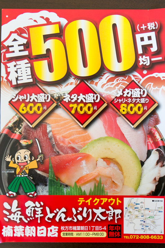 楠葉朝日につくってた税別500円均一海鮮丼のお店「海鮮どんぶり太郎」がオープンしてる