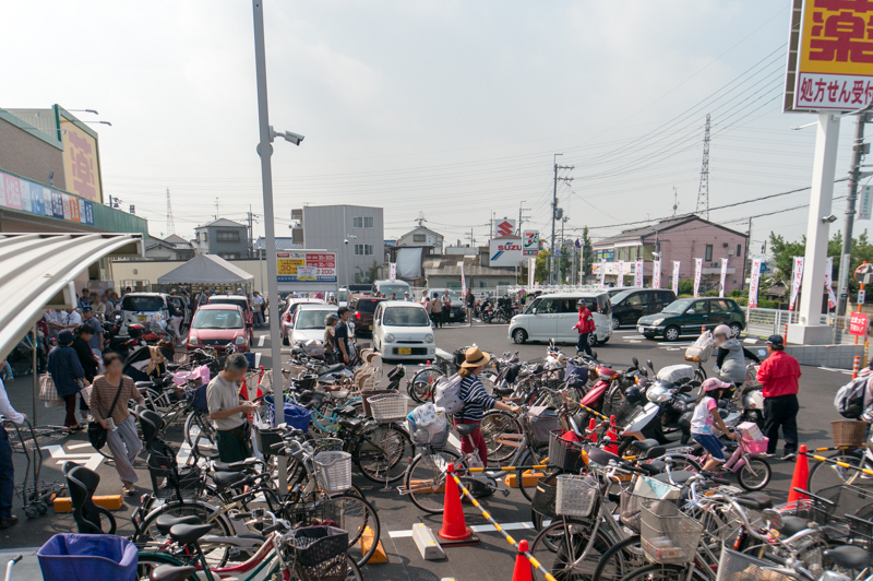 お店の前にある駐輪場や駐車場スペースは利用者の方でいっぱいでした。
