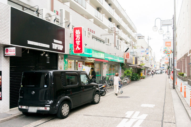 反対方向に行くと目の前にはパチンコ店があり、右に曲がるとローソンやTSUTAYAなどの横を通って香里園駅の方へ。