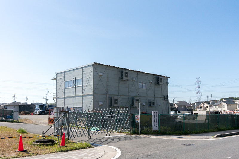 建設予定地のすぐ隣のスペースには、現場の方用のプレハブらしきものが。