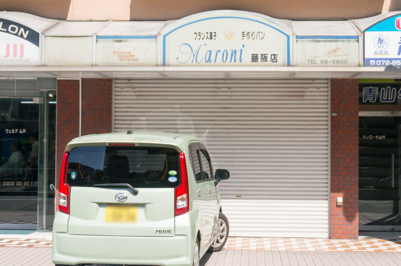 見に行った時にはシャッターが下りていて店内の様子はわからず。この場所には看板にもある通り、5月までブーランジェリーマロニがありました。