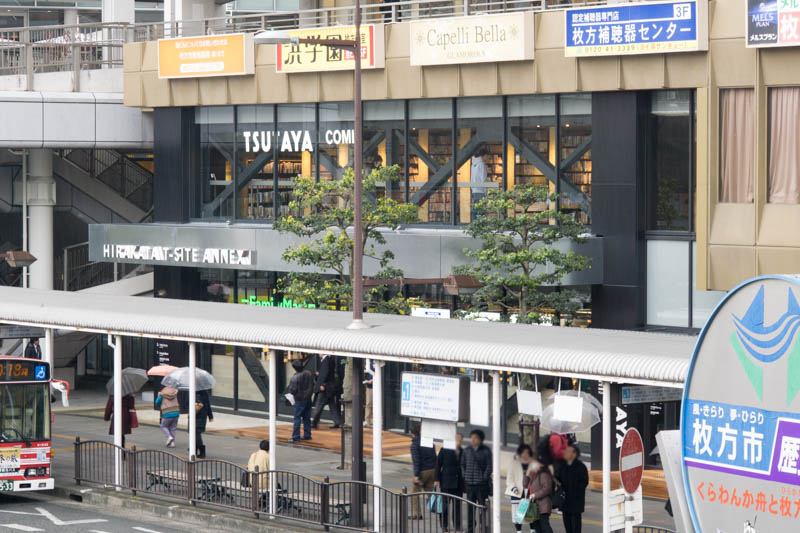 枚方市駅の真ん前、近鉄百貨店の跡地にできたCCC(カルチュア・コンビニエンス・クラブ)が手掛ける「生活提案型商業施設」。代官山T-SITE、湘南T-SITEに続く3店舗目。