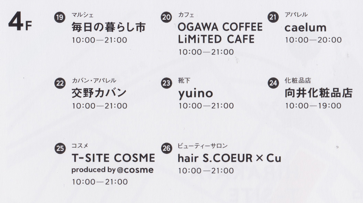 店舗一覧(外部リンク)/ 営業時間はこちら(T-SITE 公式サイト)