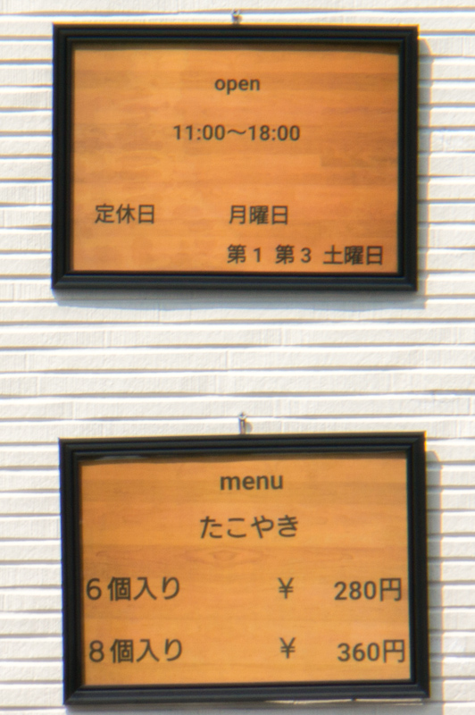 営業時間は11:00から18:00となっていて、たこ焼きは6個入り280円・8個入り360円。