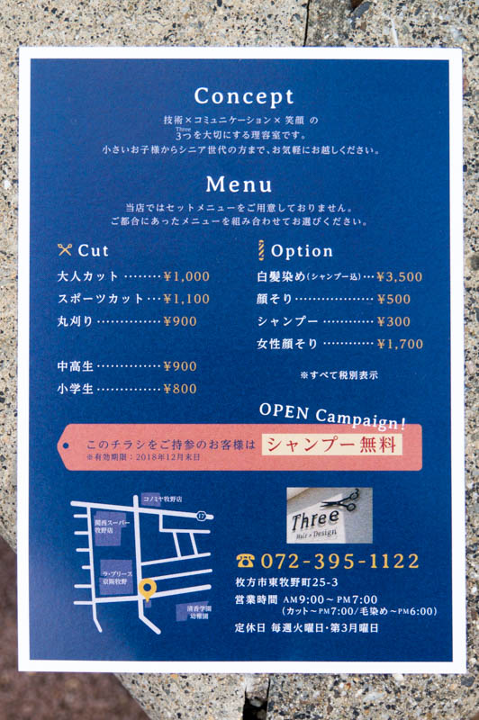 12月末まではオープンキャンペーンとしてチラシ持参でシャンプー無料とのこと。