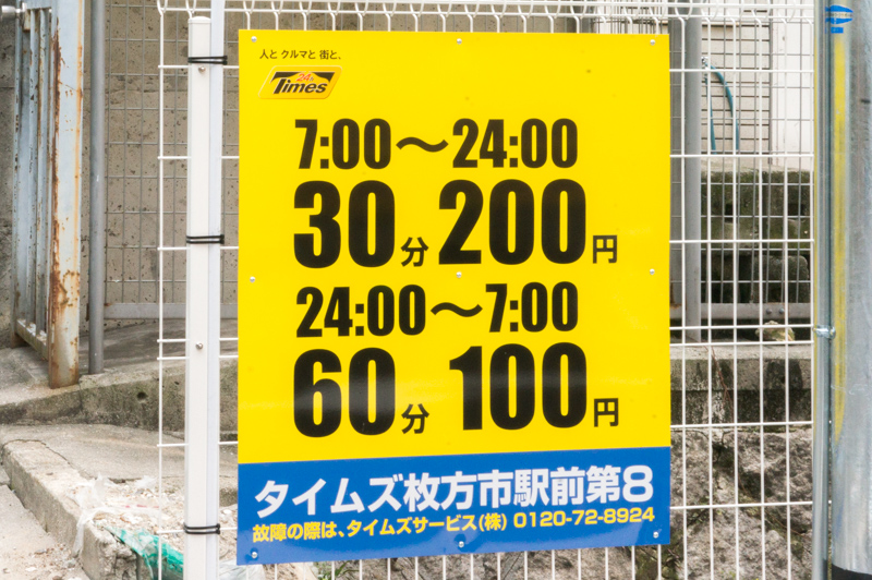 こちらの近くには、昨年2月にオープンした「タイムズ 枚方市駅前第7」ががんこ寿司裏にあり、そちらも駐車場台数や料金は同じ。