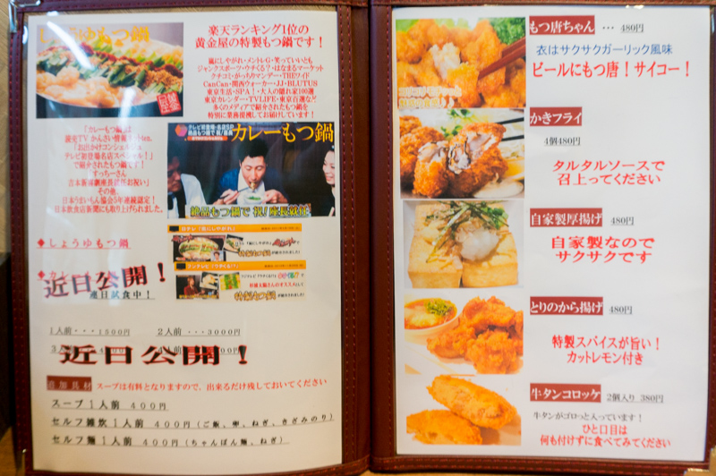 もつ鍋は「しょうゆもつ鍋」「カレーもつ鍋」の2種類あり、カレーもつ鍋は近日提供スタートするようです。しょうゆもつ鍋は2人前まで注文可能となっていて、3人前以上の提供はカレーもつ鍋と同じく近日スタート予定。