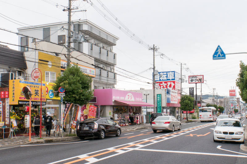 こっちに行くとサイクルベースあさひやダイソーなどの前を通って、くずはアベニューとの交差点「楠葉中央」の方へ。