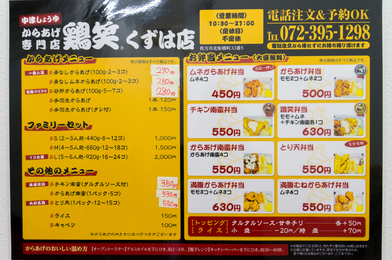 府道18号線沿い北船橋町に作っていた唐揚げ専門店「鶏笑(とりしょう) くずは店」がオープンしています。