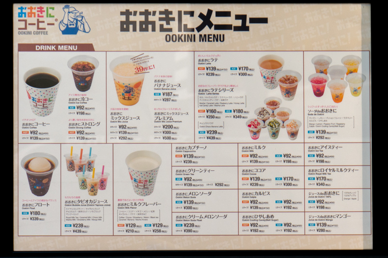 おおきにコーヒーのドリンクメニュー↓