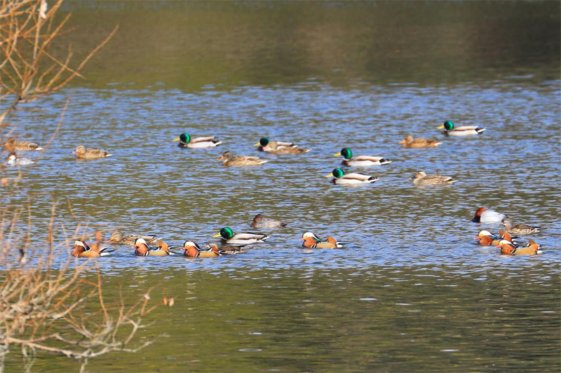 二枚目、2016年2月撮影 カラフルなオシドリさんとマガモさん‥