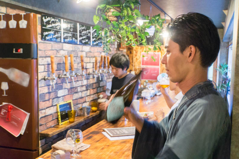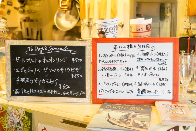 この日のビールのラインナップは右側のホワイトボードを参照。ほぼ毎日入れ替わるそうです。
