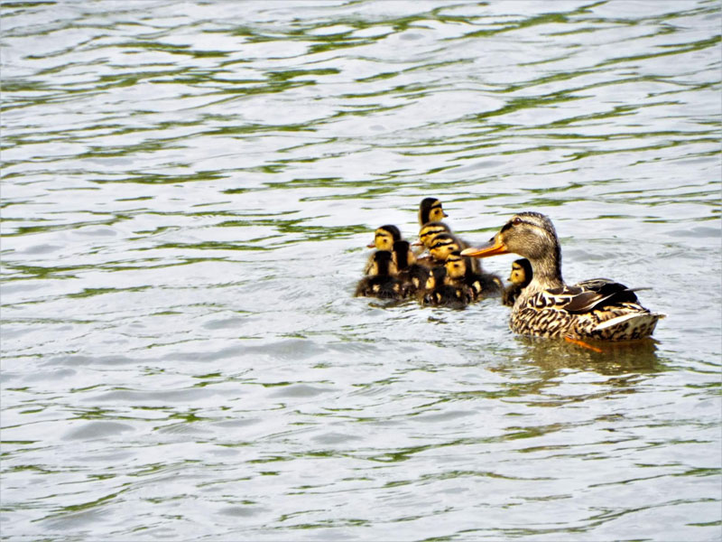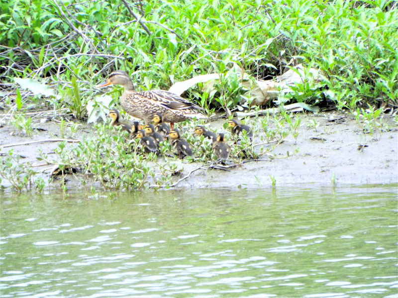 初めてカルガモの親子を見ました。