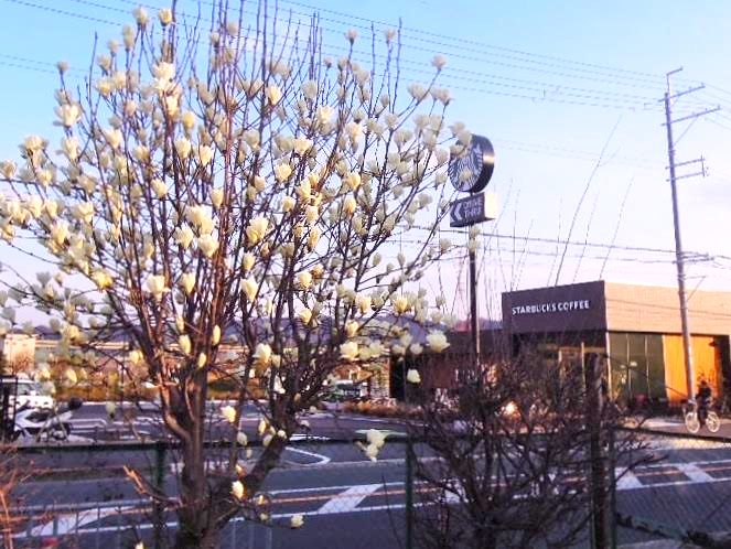 高田のスタバ近くに咲いたハクモクレン【枚方フォト】